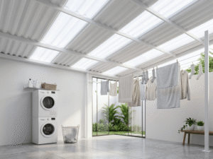 Membantu menjaga ruangan tetap sejuk tanpa perlu insulasi tambahan di iklim tropis.